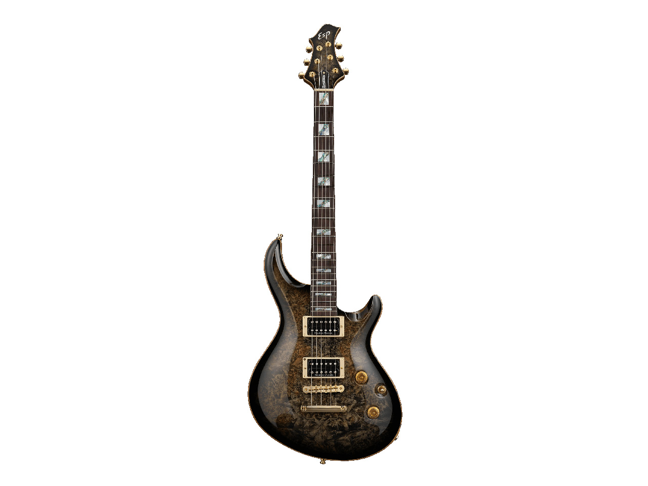 ESP MYSTIQUE-CTM Burled Mapleは、独特な杢が魅力のバールメイプルをトップ材に使用した、ESPのニュースタンダードモデルです。