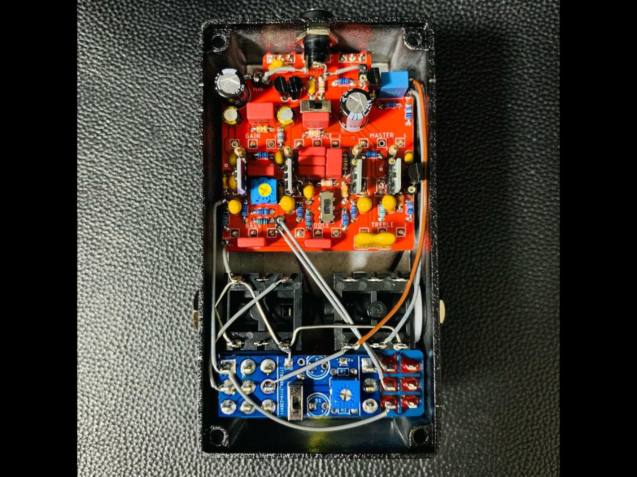 VeroCity Effects Pedals(ベロシティエフェクツペダルズ) FRD-B2-PLUSは、一つ一つハンドセレクトされたパーツをカスタムレイアウトされたVero to PCB(*)基板に丁寧に組み上げ、BELDENワイヤー、高品位な実機のアンプでも使用されるシルバーマイカコンデンサを用いたFriedman BE-100のブラウンチャンネルのエミュレーターになります。最先端のブティックブラウンチャンネルアンプヘッドのプリ部の回路を精細に抽出しHammond B Sizeに収め、真空管をFETに置き換え可能な限りサウンドを模倣したペダルとなります。