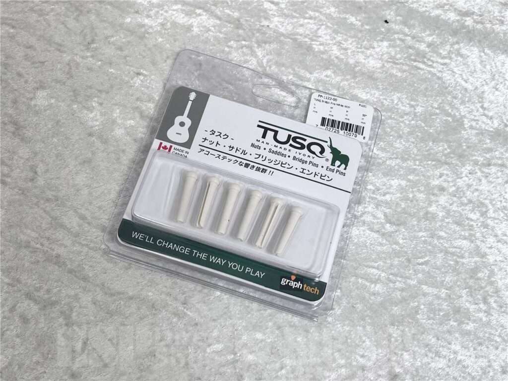 牛の骨を削りだして作られたもので、ナットやブリッジサドルにも使用されている定番材です。