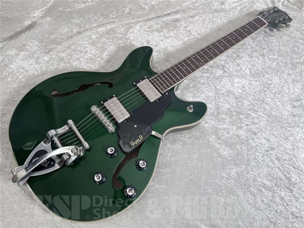 また、Pelham Blue、Emerald Greenには音色の多様性を高めるローラー・テンション・バーが付いたギルドのビブラート・テイルピースを装備しています。