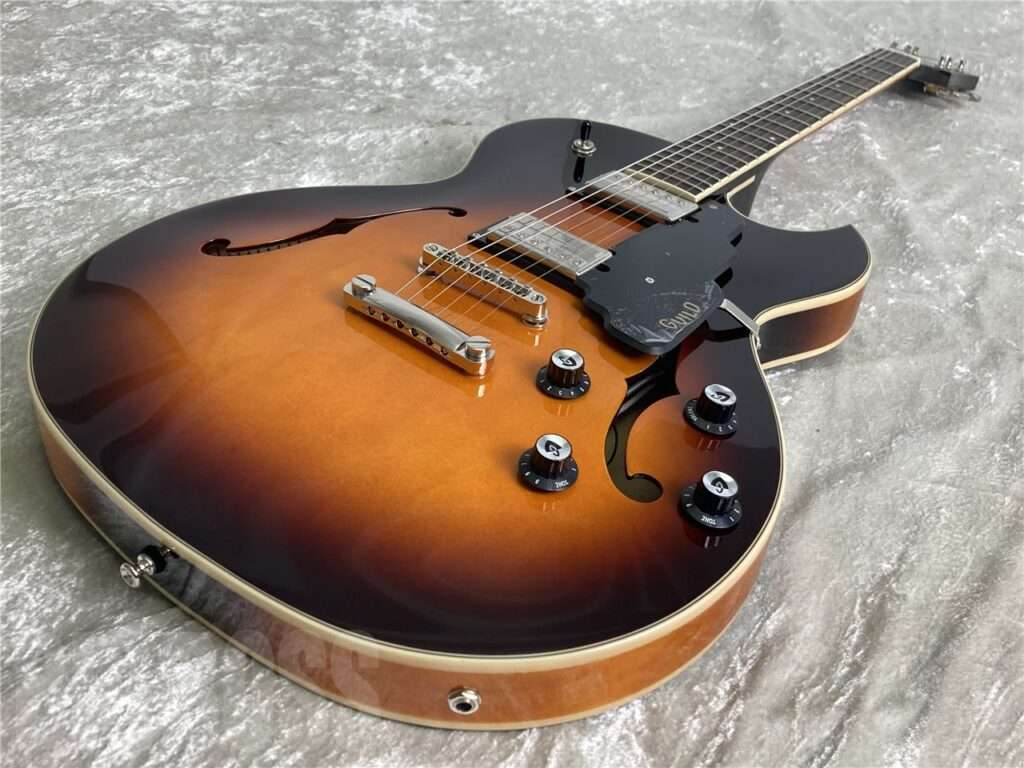 Guild独自のHB-2 Alnico IIハムバッカーによるリッチでビンテージなトーンと、プッシュプルコイルスプリットにより、シングルコイルトーンも選択可能です。