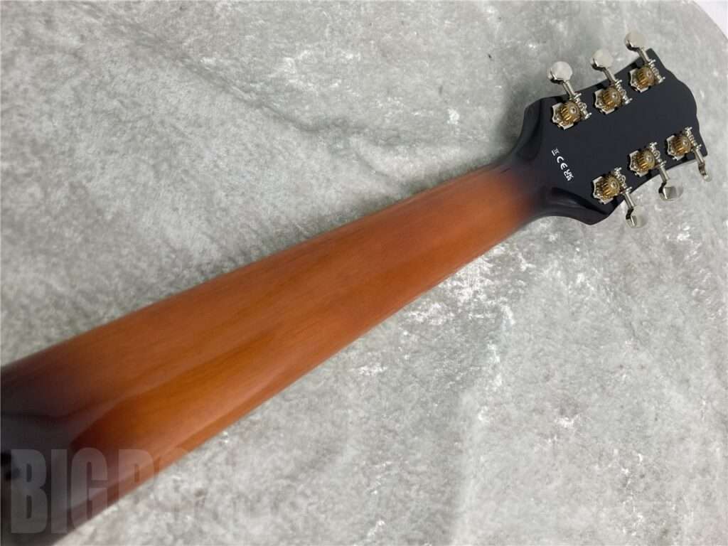 サテン仕上げのCシェイプ648 mmスケールのネックは、ギルド初のローステッド・メイプル・ネックを採用し、ヴィンテージなルックスと剛性、安定性を向上させました。